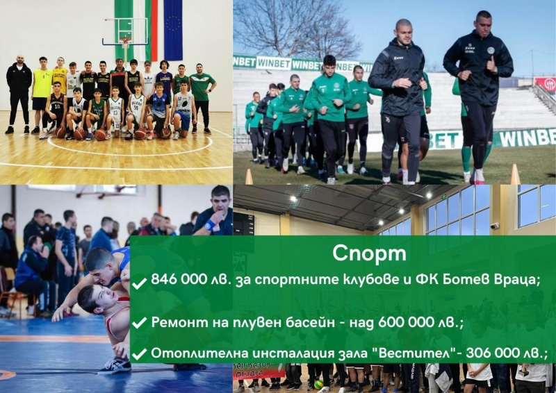 - 846 000 лв. за спортните клубове и ФК Ботев Враца;
