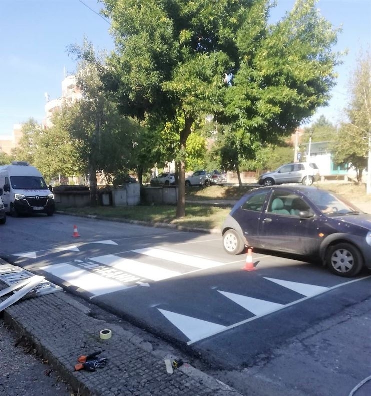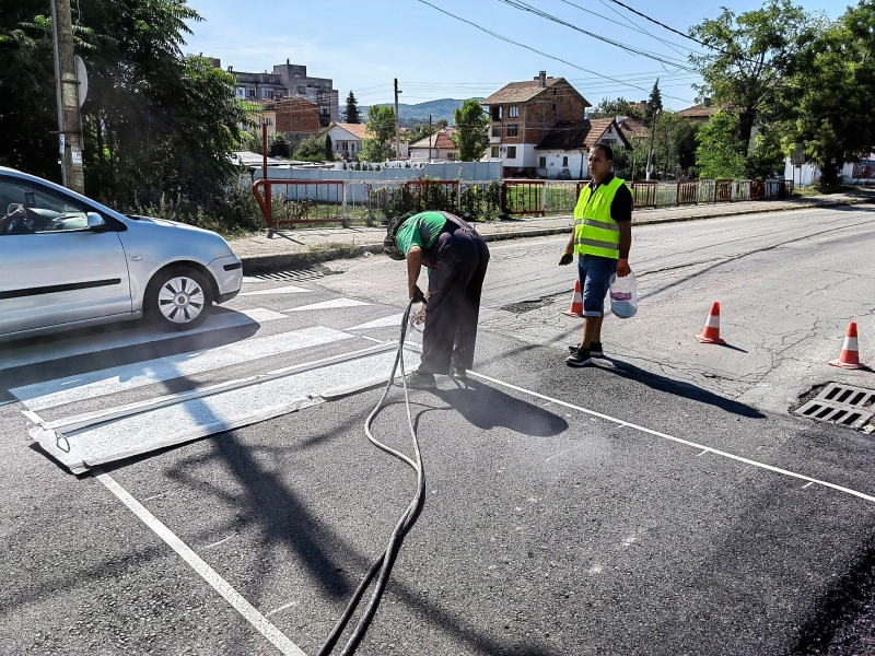 Община Мездра изгради четири повдигнати пешеходни пътеки и обнови хоризонталната пътна маркировка в Мездра /снимки/