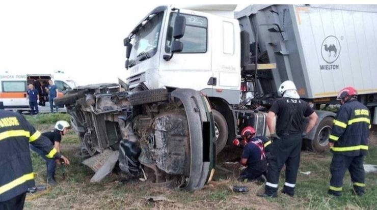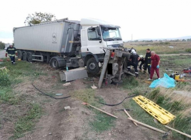 Двамата мъже се придвижвали с товарен автомобил, който предприел ляв завой и се озовал пред камион, чийто 50-годишен водач е извършвал изпреварване. От удара двата автомобила са излезли извън платното за движение.