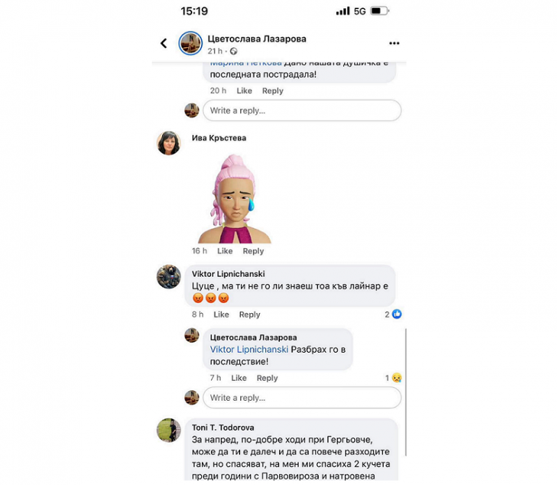 Момиче обвинява ветеринар от Мизия за смъртта на нейното куче. В редакцията ни постъпи сигнал от Цветослава Лазарова. Според нея ветеринарят Илиян Личков е виновен за това, че домашният ѝ любимец е починал преди 3 дни.