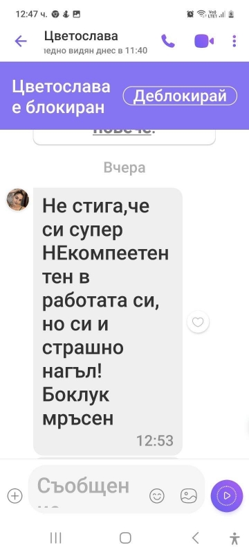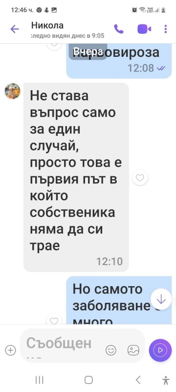 На другата сутрин дойдоха отново с кученцето, като казаха, че е повърнало еднократно през нощта, но сутринта си е яло и не е повръщало. Продължихме терапията със същите лекарства и се разбрахме ако се появи диария да дойдат да направим тест за парвовирусен гастроентерит. Собствениците са звънели на 01.10.2023 към 2.30 - 3.00 часа на личния ми телефон, но имаме малко дете на 1 годинка и си изключвам звука нощно време. Не зная с какви симптоми и как точно е починало кученцето, но разбрах, че нещо се е случило когато започнах да получавам обиди и заплахи по телефона и по вайбър. Започнаха да ми пишат непознати хора... убиец... боклук...
