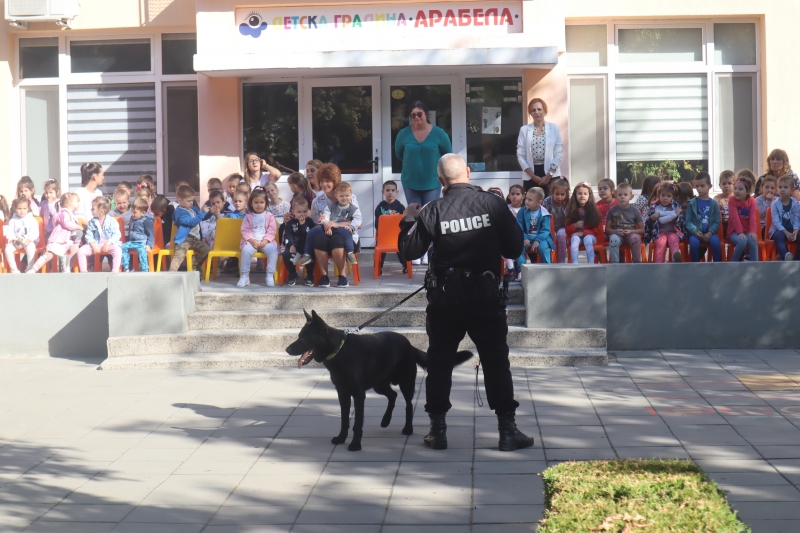 Малчуганите научиха как се обучават и отглеждат служебните полицейски кучета – Кай, Дарко и Зоро, видяха отблизо и как изпълняват командите на своите водачи. Обяснено им беше какви са задълженията на четириногите полицаи и как преминават един техен ден. Служителите на реда отправиха препоръки към момичетата и момчетата как да се пазят от бездомни животни или непознати домашни любимци.