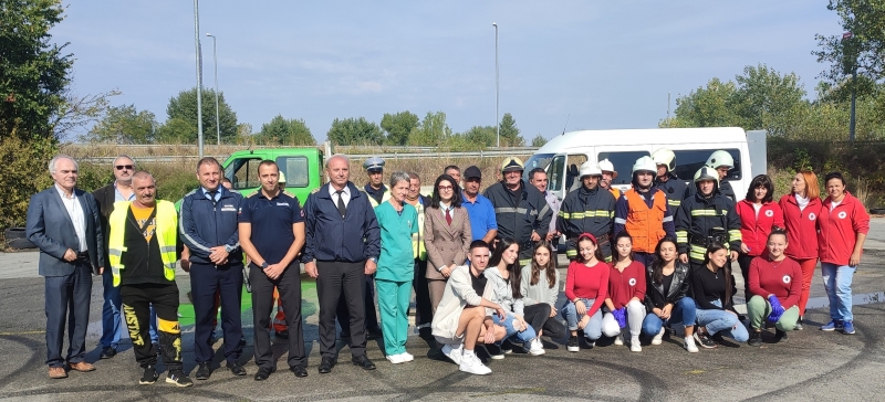 Пълномащабното учение на съставните части на Единната спасителна система (ЕСС) при получаване на сигнал за пътнотранспортно произшествие с пострадали бе проведено днес във видинската южна промишлена зона.