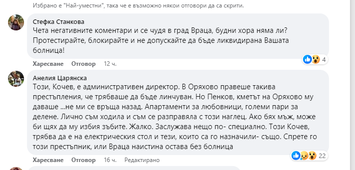 Новината, че Янко Кочев се готви да оглави врачанската болница взриви социалните мрежи. Във фейсбук гърми и трещи от критични коментари, които би трябвало да са ясен знак за общинската управа на Враца и останалите акционери в МБАЛ „Христо Ботев“.