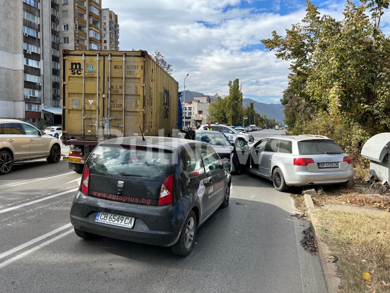 От последните минути! Тежка верижна катастрофа на натоварен булевард във Враца, движението е затруднено /снимки/