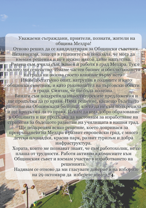Гласувайте с номер 74 за развитието на Община Мездра!