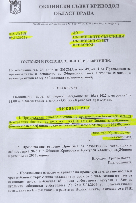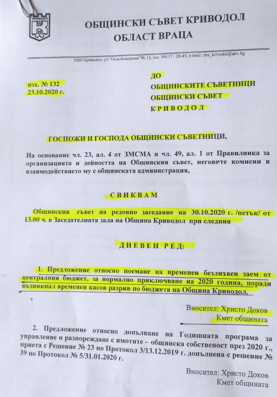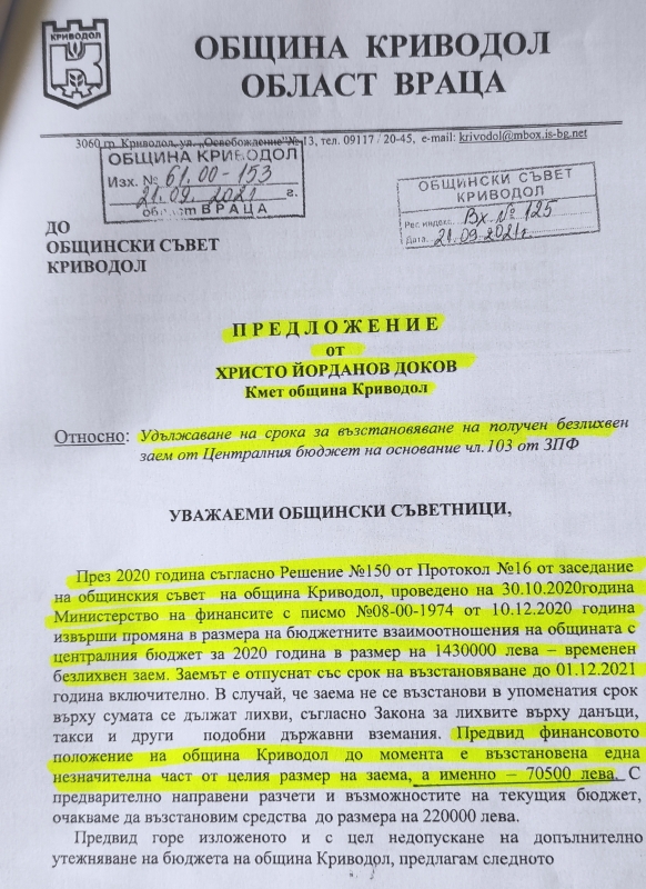 Хора, бдете! Доков Бей закопава общината в Криводол с нови заеми, лъже, че е изплатил 4 млн. стари дългове /Доказателства/