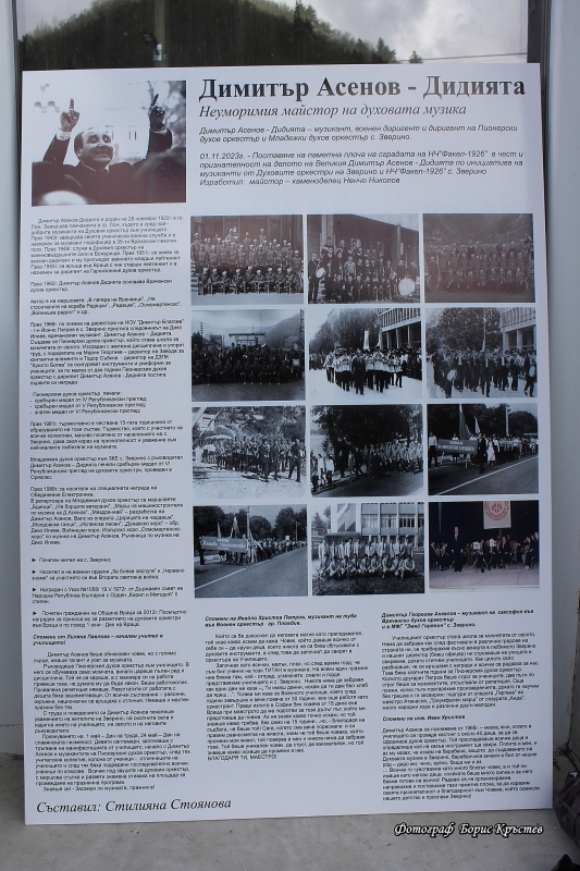 В Деня на народните будители - 1 ноември, в мездренското село Зверино беше открита паметна плоча на Димитър Асенов-Дидията (1922-2000 г.) - музикант, композитор и диригент на Гарнизонния духов оркестър в гр. Враца, основател и диригент на Духовия оркестър към НЧ „Развитие-1869“ - Враца, на Пионерския духов оркестър към НОУ „Димитър Благоев” (дн. СУ „Св. Климент Охридски“) - с. Зверино и на Младежкия духов оркестър към Завода за контактни елементи в с. Зверино през 50-те, 60-те, 70-те и 80-те години на XX век.