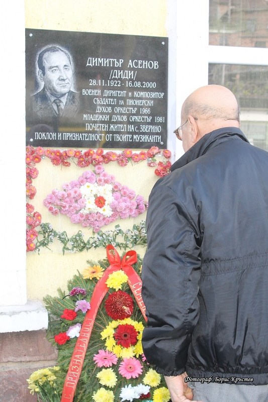 В знак на признателност към големия музикант, композитор и диригент пред паметната плоча беше поднесен венец от името на сем. Асенови.