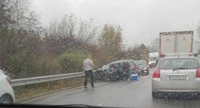 Според първоначална информация, възрастен водач изпреварвал колона с автомобили, като ударил първия.