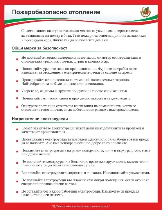 Зимата е сезон, през който рязко се усложнява пожарната обстановка в резултат на масовото използване на локални отоплителни и нагревателни уреди.