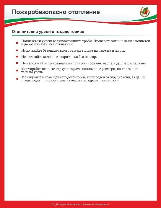 РДПБЗН–Видин апелира към гражданите за повишено внимание, бдителност и спазване на правилата за пожарна безопасност през отоплителния сезон.