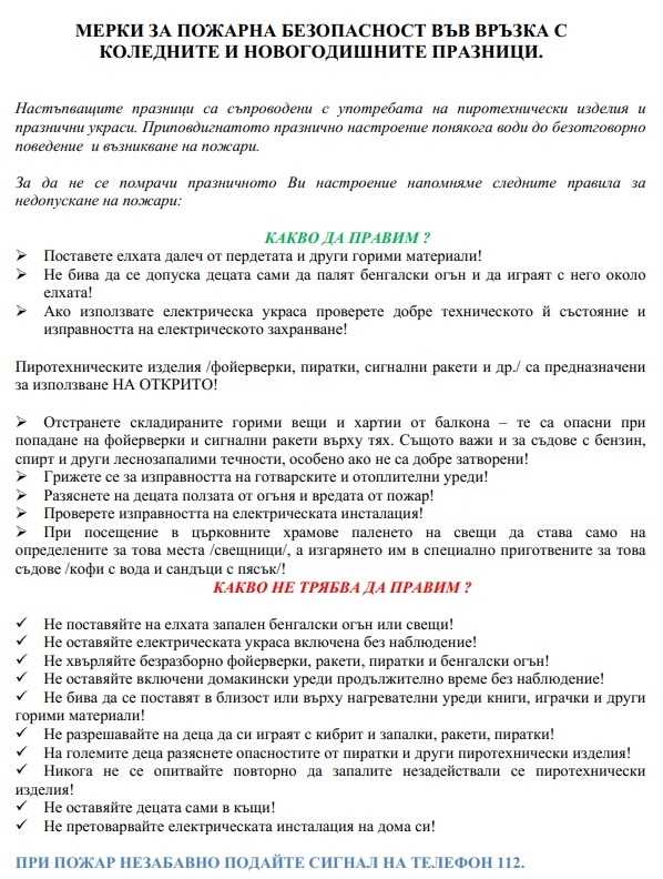 За да не бъде помрачено Вашето празнично настроение от РДПБЗН-Видин напомнят най-важните правила за пожарна безопасност. Можете да ги видите в галерията по-долу.