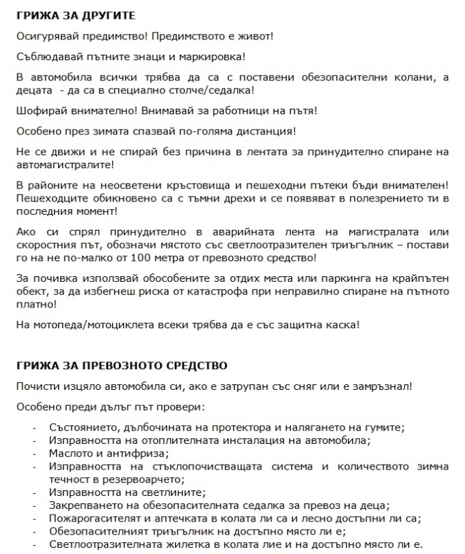 Практическите препоръки от експертите в отдел „Пътна полиция“ при Главна дирекция "Национална полиция" в МВР също можете да видите в галерията.