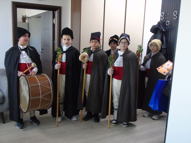 В традиционно празнично облекло и с накичени калпаци, а в ръцете - „шарени тояги“, коледари от две общински училища гостуваха в общинска администрация Бяла Слатина. Кметът инж. Иво Цветков, зам.-кметовете на общината, както и директорите на дирекции, посрещнаха малките коледари от НУ „Цани Гинчев“ и техните по-големи батковци от ОУ „Св. Климент Охридски“.