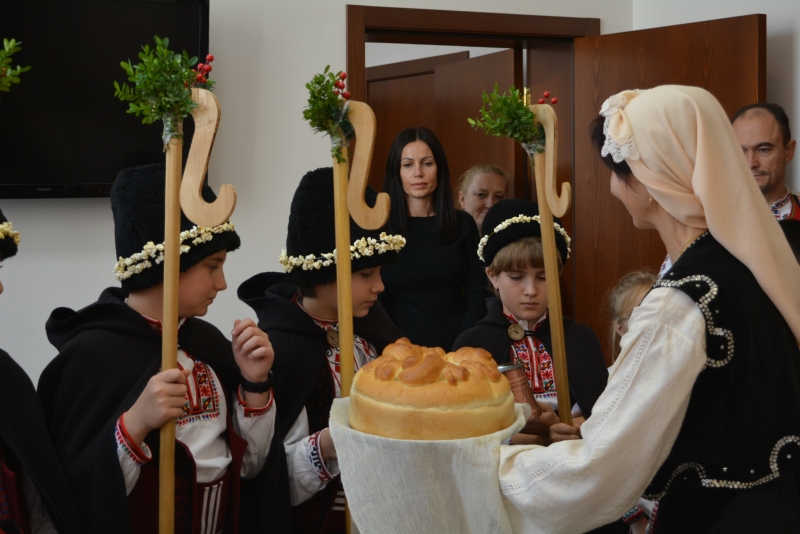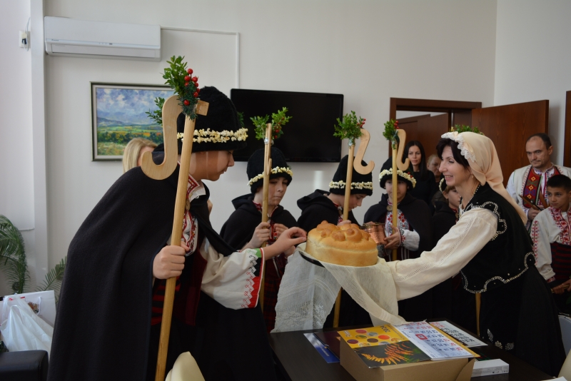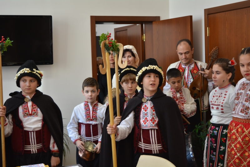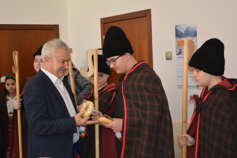 Първи в сградата на общинската администрация пристигнаха коледарите от III-то основно училище „Иван Вазов“. Хорът на дружината се чуваше от далеч с традиционните възгласи: