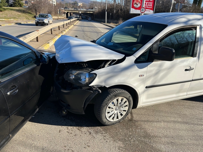 Последвал сблъсък между двете превозни средства. За щастие шофьорите не са пострадали, но има нанесени сериозни материални щети. Освен това ударът е станал насред пътя и той е затворен.