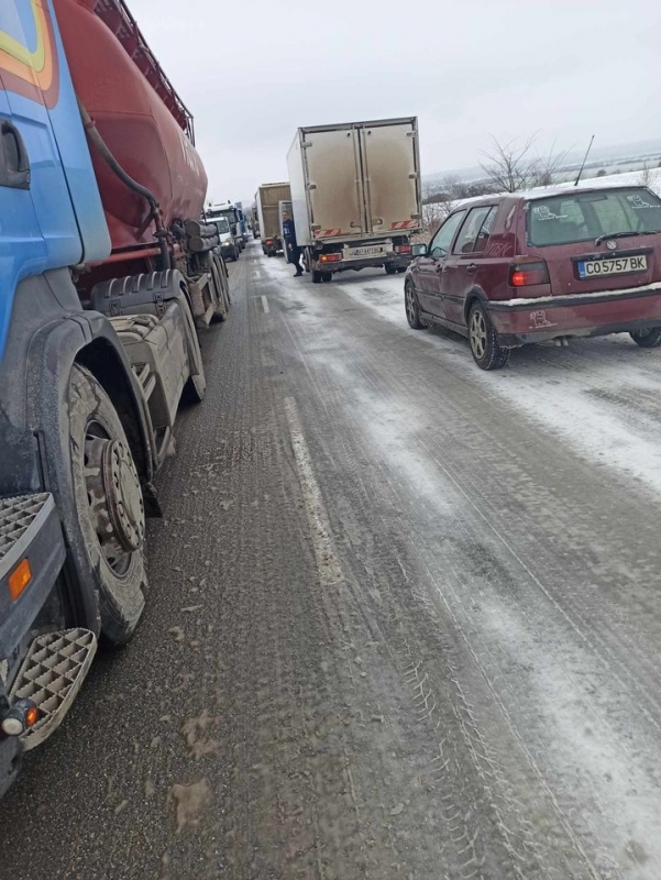 Според очевидци между двата града има и ПТП между кола и камион, което допълнително влошава обстановката.