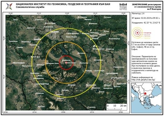 Земетресение с магнитуд 2.6 по Рихтер е регистрирано в района на Самоков, съобщиха от Националния сеизмологичен център към Национален институт по геофизика, геодезия и география - БАН.