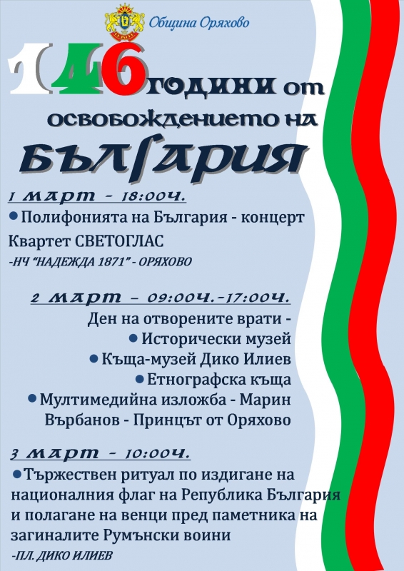 Община Оряхово представя програмата за честване на Националния празник на Република България - 3 март.
