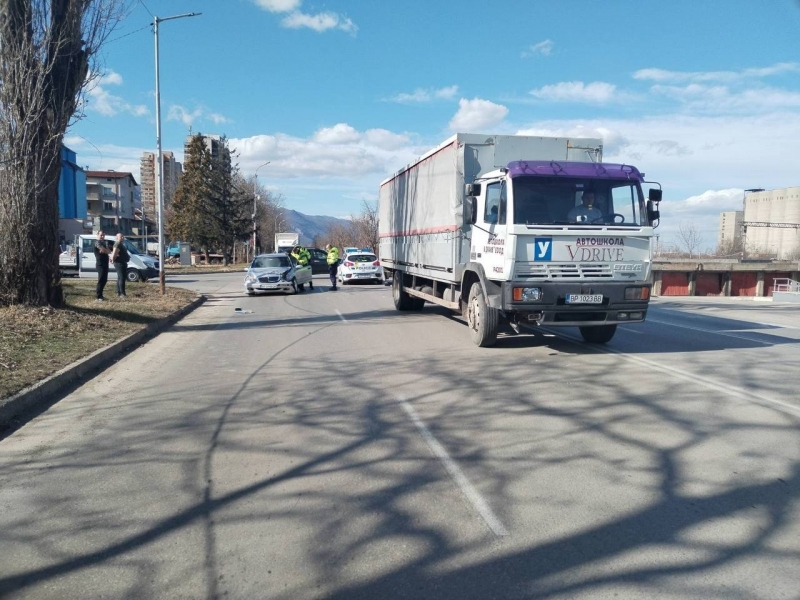 Пътният инцидент е станал преди минути, на бул. „Васил Кънчов“. Лек автомобил „Мерцедес“ с врачанска регистрация се движел по улица „Спортна“, в посока натоварения булевард. Шофьорът стигнал до кръстовището, но не спрял на знак „Стоп“ и се ударил странично в учебен камион „Щаер“. Ударът е бил толкова силен, че голямата машина, която е собственост на известната автошкола „V drive“, се е завъртяла на пътя.