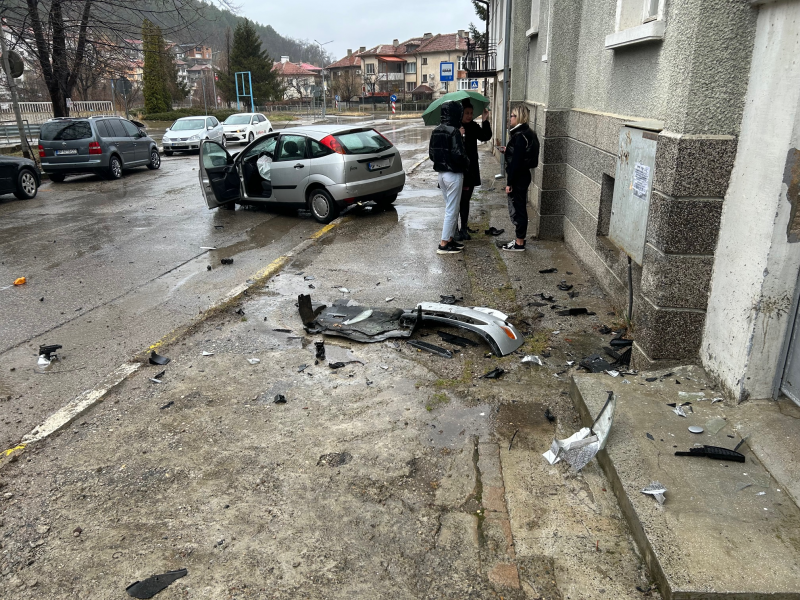 Инцидентът е станал преди минути, на слизане от Згориград, малко преди Червения площад. Младата шофьорка пътувала към града заедно със своя приятелка. Тя обаче загубила контрол над волана и возилото се поднесло на мокрия асфалт. То се качило на бордюра, след което се блъснало в къща.