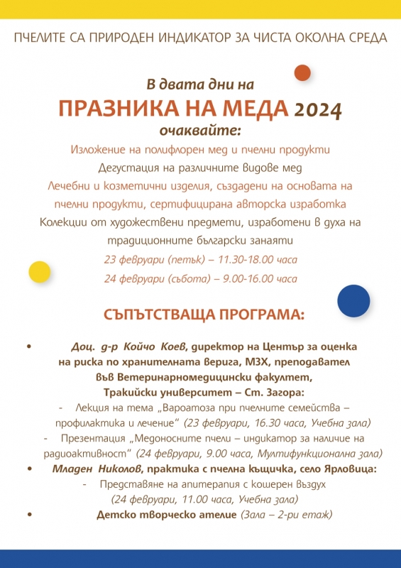 На 23 и 24 февруари 2024 г. в Козлодуй отново ще се проведе Празник на меда.