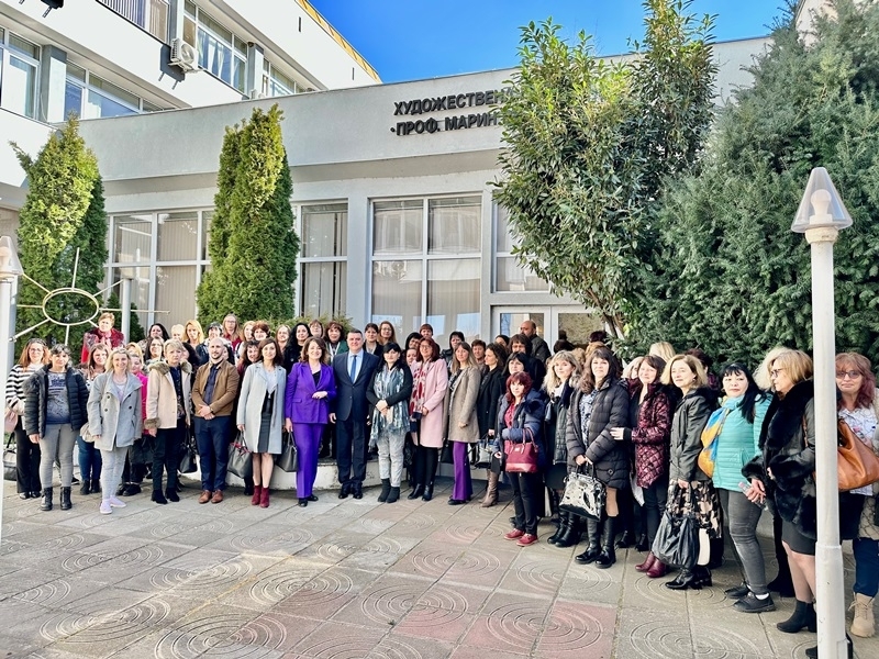 След топлото посрещане от учениците, Росен Добрев приветства всички гости с добре дошли и благодари на Лорета Колева за доборото сътрудничество и добрите постижения в образователната система до днес, пожелавайки успешно и ползотворно провеждане на работните срещи по места в образователните институции.