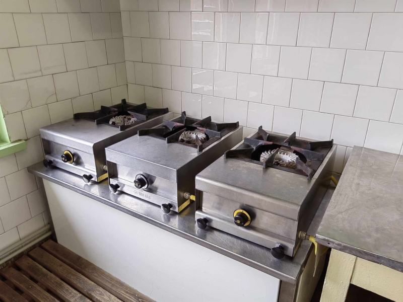 Ремонтните дейности включват шпакловане и боядисване на стените и поставяне на гипсокартон на тавана на помещението, което се ползва за чакалня, доставка и монтаж на ново кухненско оборудване - три газови котлона и направа на навес от поликарбонат над външния вход на кухнята.