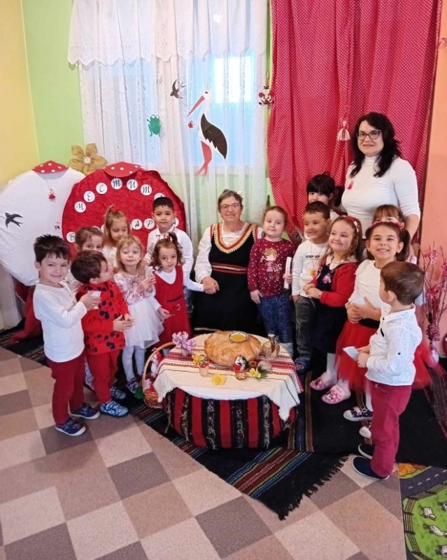 Добрата старица навести и малчуганите от ДГ „Васил Левски“, село Бързия. Тя дойде с пълна кошница с мартенички, сладка питка и благи думи. Гостенката се порадва на поздравите, отправени от децата и обеща, че догодина пак ще пристигне при тях.