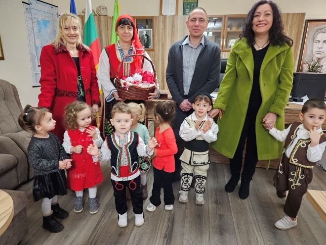 Деца от III ОУ „Иван Вазов“ и Детска ясла – Берковица поздравиха председателя на ОбС- Берковица Иван Кирилов, кмета Радослав Найденов и неговия екип с най- българския празник, предвестник на пролетта- посрещането на Баба Марта.