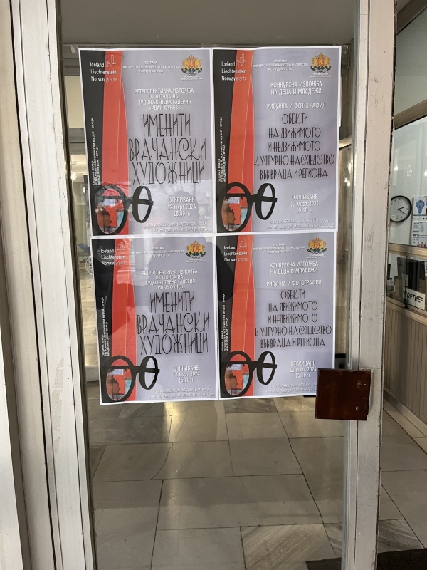 Вчера от 15:00 часа в обновените изложбени зали („Бяла“ и „Синя“) в Младежки дом – Враца, бе открита официално изложбата „Именити врачански художници“, в изпълнение на проект „Младежки дом - атрактивно културно средище“, Договор за безвъзмездна финансова помощ № BGCULTURE-1.001-0031-C01, с финансовата подкрепа на Оперативна програма „Културно предприемачество, наследство и сътрудничество“ на Финансов механизъм на Европейското икономическо пространство 2014-2021 г., Процедура BGCULTURE-1.001 „Първа покана за набиране на проектни предложения по Резултат 1 „Подобрено управление на културното наследство“, Подрезултат 1.1 „Културно наследство, представено в ревитализирани, реставрирани и реновирани места“.