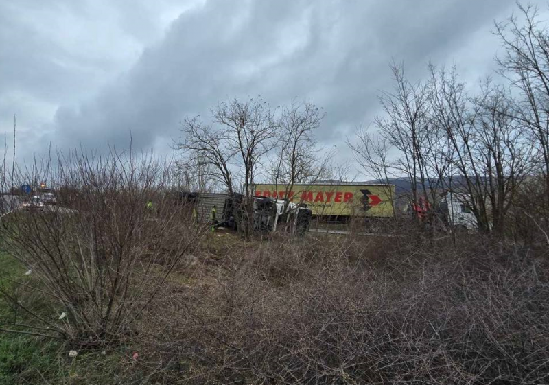 Опасна каскада! ТИР се обърна на Е-79 между Монтана и Враца /снимки/