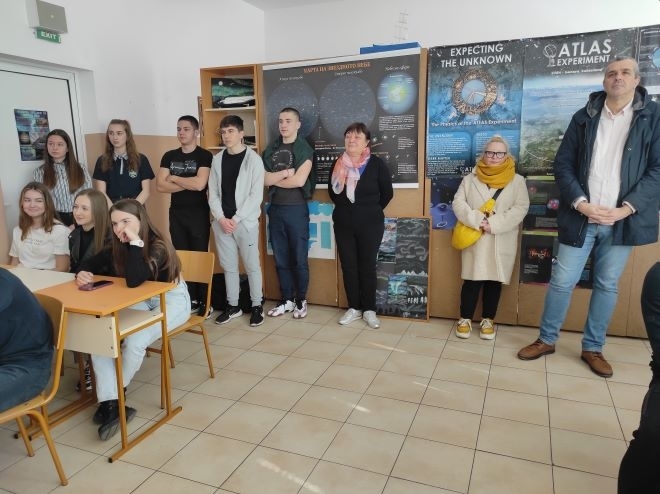 Наред с това ученици представиха и експеримента на Ератостен, който сами проведоха. За екипа беше изключително преживяване да участва в този проект съвместно с 80 училища от 30 държави. Експериментът е разработен от древно гръцкия астроном, географ и математик Ератостен, главен библиотекар на Александрийската библиотека. Неговото измерване на обиколката на Земята, направено преди около 2 000 години, е високо уважавано по негово време и поставя стандарт за години напред. Нашите ученици, ръководени от г-жа Пепа Павлова, учител по Физика и със съдействието на г-жа Ани Павлова и г-жа Калина Николова, учители по Английски език, направиха ясен и точен план за действие и в деня на пролетното равноденствие проведоха своя експеримент. Опитът се състоеше в първа стъпка - определяне точния час на пладне за нашата географска ширина и дължина с помощта на сайта timeanddate.com. След това, точно в 12,32 ч., учениците измериха сянката на пръчка, поставена на земята под прав ъгъл, определиха разстоянието от нашето училище до екватора чрез https://www.google.com/maps, с тригонометрични изчисления получихме важния ъгъл.