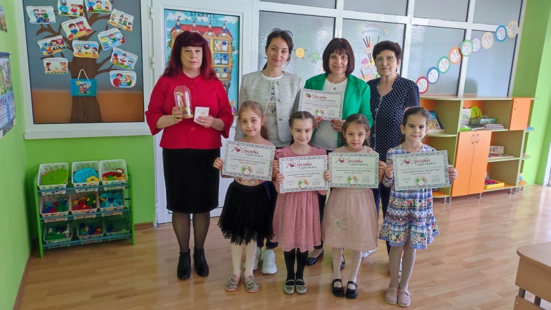 Днес децата от четвърта група „Гъбка“ в детска градина „Единство Творчество Красота“ - Враца получиха своите награди за отлично представяне в Национален художествен конкурс „Билките оживяват чрез децата“.