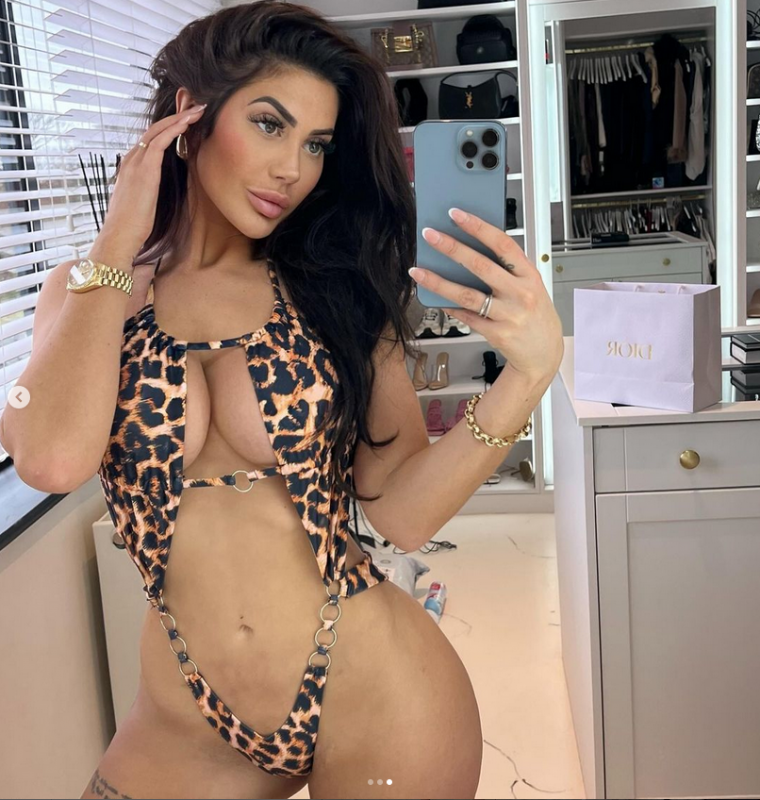 Тя сподели три снимки, като се щракна пред огледалото по бански, разкриващ прелестите й. Под поста й не спират да валят лайкове, както и коментари за тялото й, което е продукт на пластичната хирургия.
