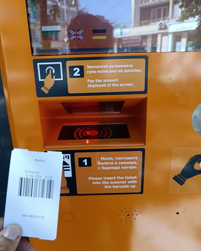 След престой, билетите от системата се сканират на двата автомата за заплащане, разположени на сградата на община Мездра и в Алеята на кестените.