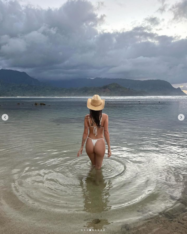 На публикуваната снимка 20-годишната моделка от платформата OnlyFans е заснета с розов комплект бельо, състоящ се от сутиен и прашки. В същото време тя се появява пред камерата, коленичила, обърната странично към камерата и изплезила език.