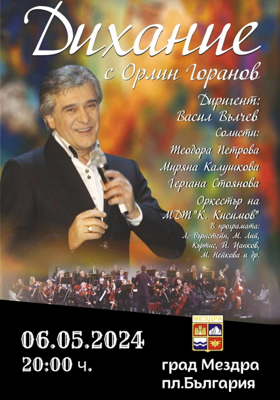 19:30 ч. - „Дихание“ - концерт на Орлин Горанов и на Симфоничния оркестър на Музикално-драматичен театър „Константин Кисимов“ - Велико Търново (пл. „България“)