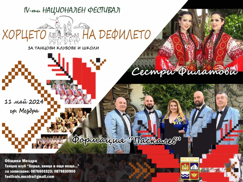 11:00 ч. - Четвърти национален фолклорен фестивал на танцови клубове, школи и състави „Хорцето на Дефилето“ (пл. „България“),
