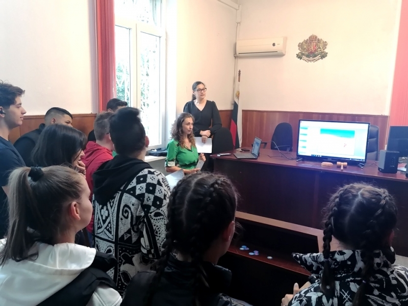 В Районният съд гостува сборна група ученици от 8 до 12 клас на Професионалната гимназия „Димитраки Хаджитошин“ в града, като с тях бе и педагогическият съветник на училището Виолета Евденов. От съда участие в състезанието взеха съдия Вероника Бозова, която задаваше въпросите и съдия Калина Христова, влязла в ролята на жокер, който, спазвайки правилата, помагаше на отборите без да им казва точния отговор. Играта бе подобна на популярното телевизионно състезание за ученици „Това го знам“ на БНТ и протече по неговия регламент.