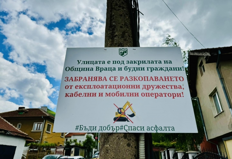 Улицата е първата в града, която е със специална табела, забраняваща разкопаванията от експлоатационните дружества, кабелните и мобилните оператори, съобщават от община Враца.