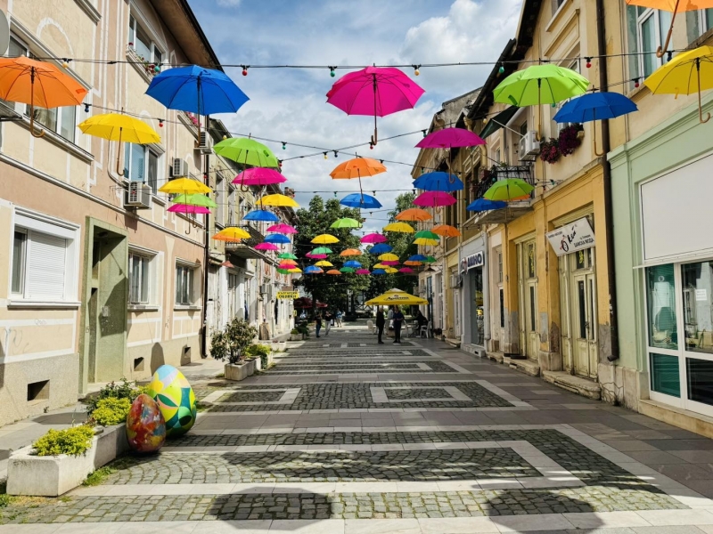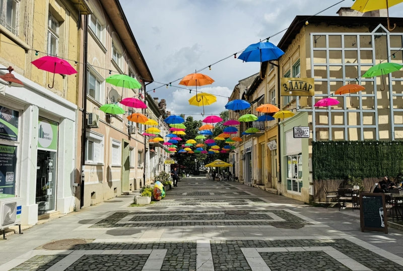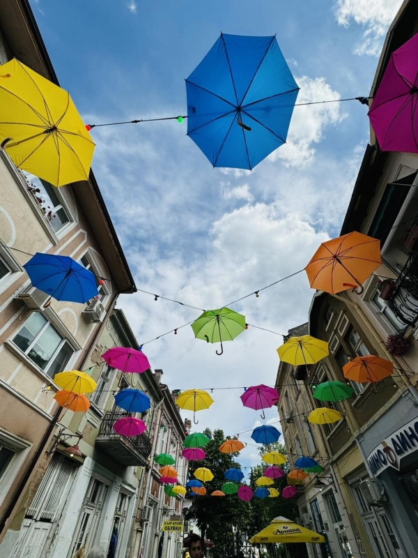 Изненада! Цветни чадъри разкрасиха емблематична улица във Враца /снимки/
