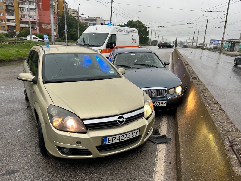 Пътният инцидент е станал преди минути, на бул. "Мито Орозов", край бензиностанция "Ромпетрол". Лек автомобил "Опел" пътувал в посока изхода на града, когато дал ляв мигач, за да направи обратен завой. Мъжът обаче не видял идващия "Ровър" и го засякъл. Последвал силен удар между двете возила, вследствие на който е пострадал шофьорът на "Опел"-а.