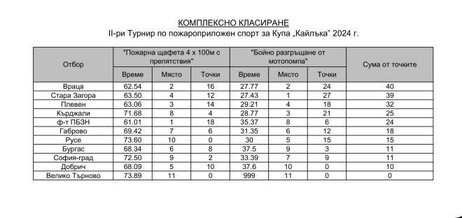 Вчера се проведе II-ри турнир по пожароприложен спорт за купа "Кайлъка", организиран от РДПБЗН Плевен и клуб по пожароприложен спорт Плевен.