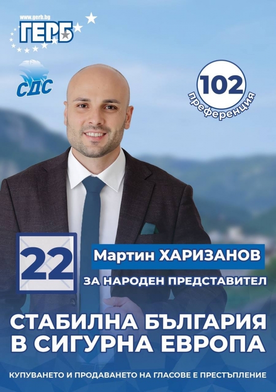 Изключително важно е на тези избори ние от ГЕРБ-СДС да имаме възможност да управляваме самостоятелно, за да продължим да реализираме плановете за икономически развита област Враца, за модерни и проспериращи градове, които да бъдат привлекателни за инвеститори и желан дом за младите хора. За да живеем в стабилна България в сигурна Европа!", каза Мартин Харизанов.
