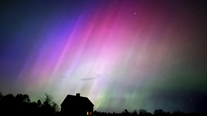 Мощна геомагнитна буря от Слънцето, обаче спомогна светлините да се появят по-на юг към Екватора в периода около 10 май. Изригването в този период на нашата звезда беше най-силното, удряло планетата Земя от 2003 година насам.