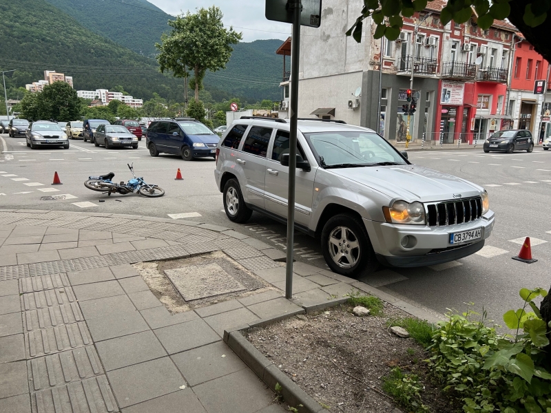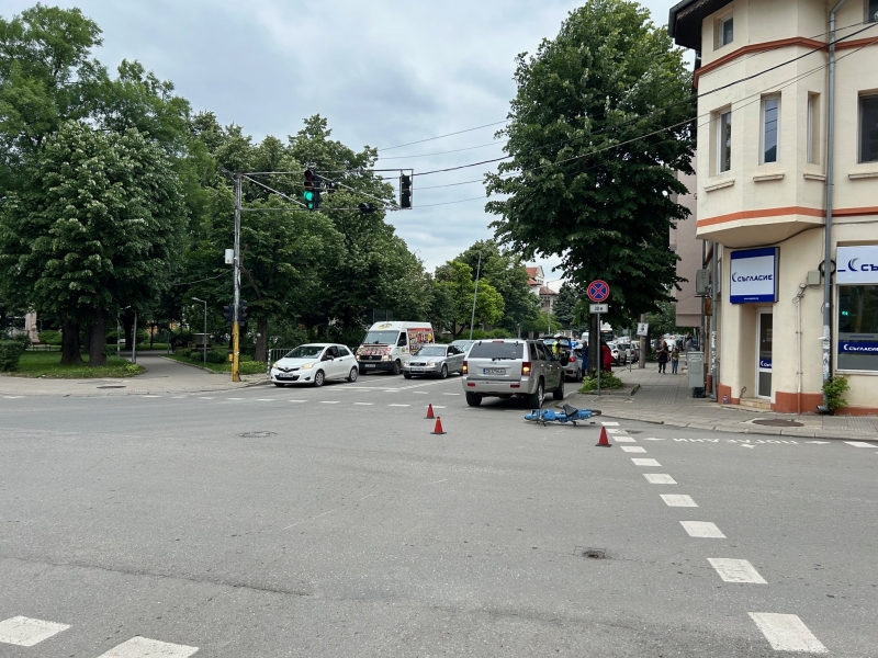 Нов инцидент! Джип помете моторист на оживено кръстовище във Враца, линейка лети към болницата /снимки/