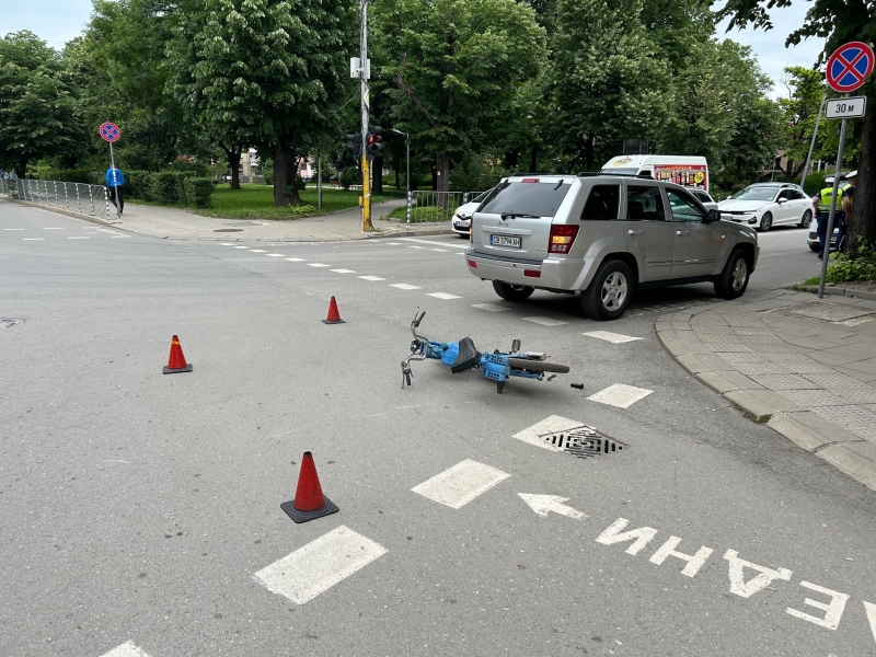 Катастрофата е отпреди минути на светофара на площад „Руски“. „Jeep” със софийска регистрация идвал откъм Крайречния булевард. По думите на шофьора, точно на кръстовището пред него излязъл човек на моторче, който идвал откъм кръговото при бензиностанция „Феникс Петрол“ и минал на червено. Мъжът зад волана на колата не успял да реагира навреме и го блъснал.