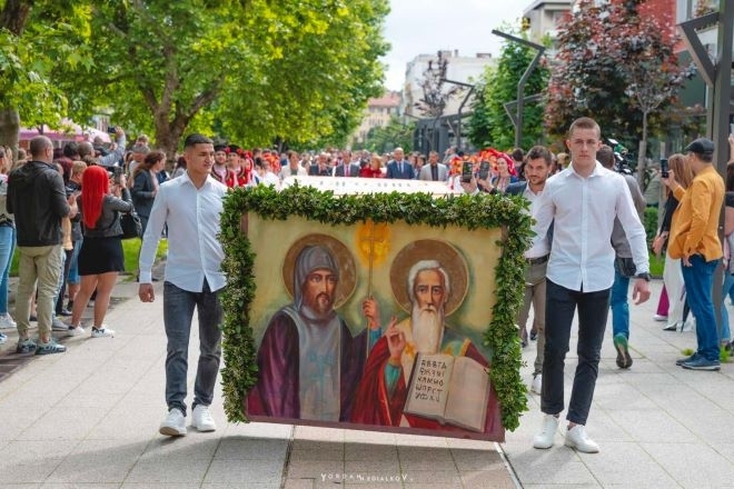 Честването на 24 май започна с “Парад на буквите”, в който участие взеха отличени ученици, педагози, културни дейци и състезатели от спортни клубове. Трите знамена, представящи глаголицата, кирилицата и съвременната българска азбука, преминаха през централната пешеходна зона.